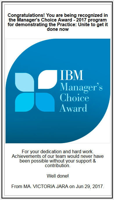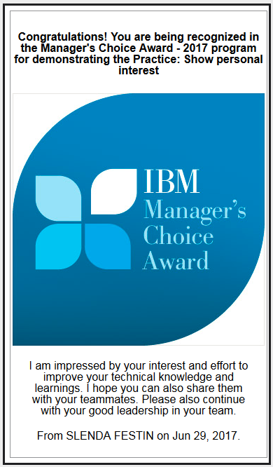 Manager's Choice Award 2017 - IBM Practice: Show personal interest